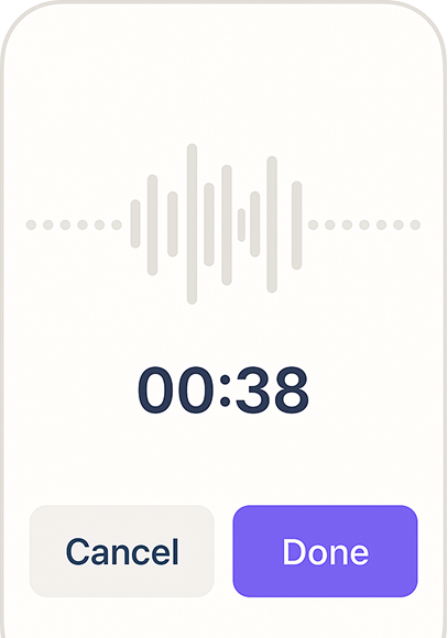 - Record your first entry in under a minute. No pressure — just speak.